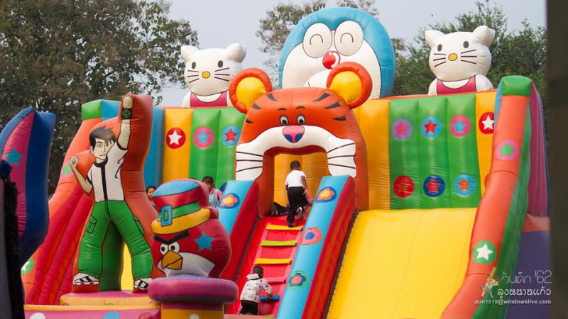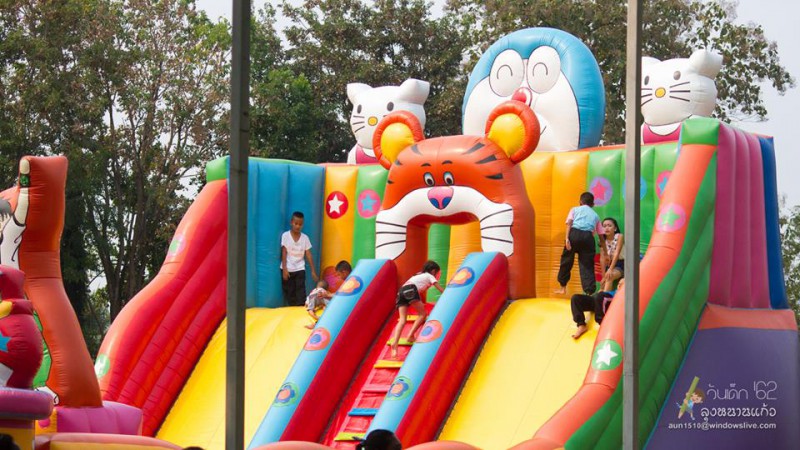 สไลเดอร์เล่นฟรีทั้งวันพลัดเปลี่ยนหมุนเวียนเล่นกันอย่างทั่วถึง |