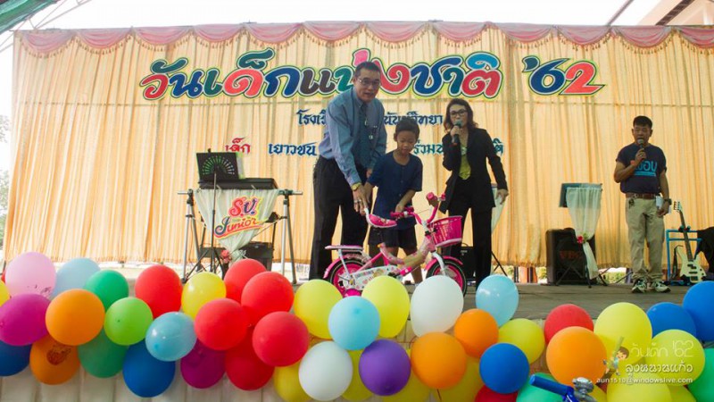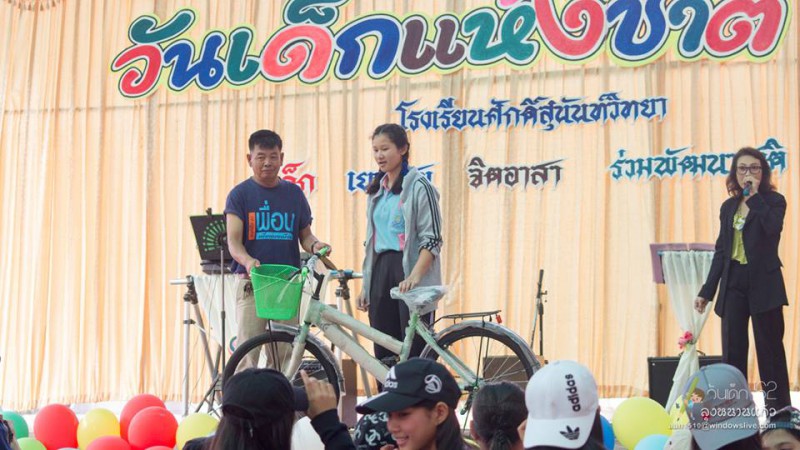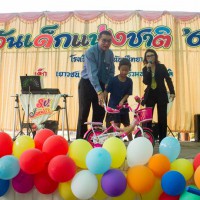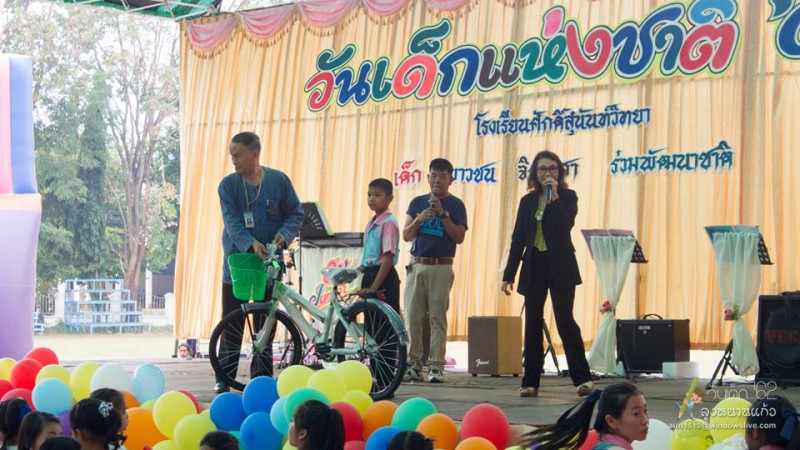 ผู้โชคดีในวันเด็กปีนี้อีกคนน้องป๊อบอายได้จักยานไปใช้ |