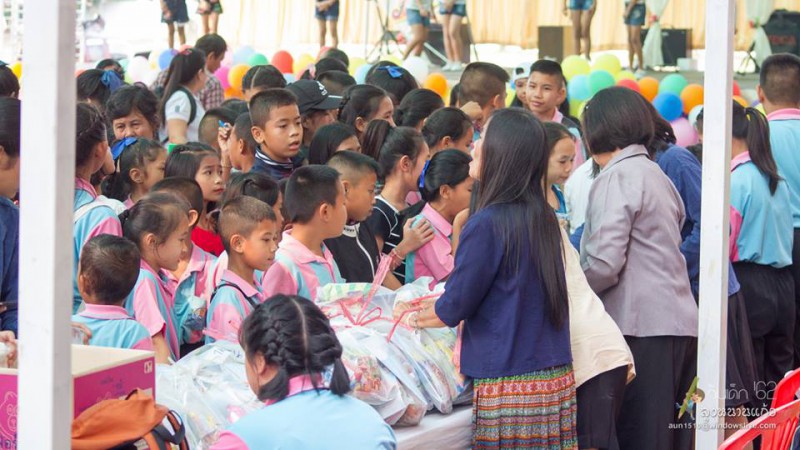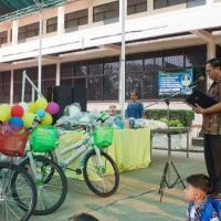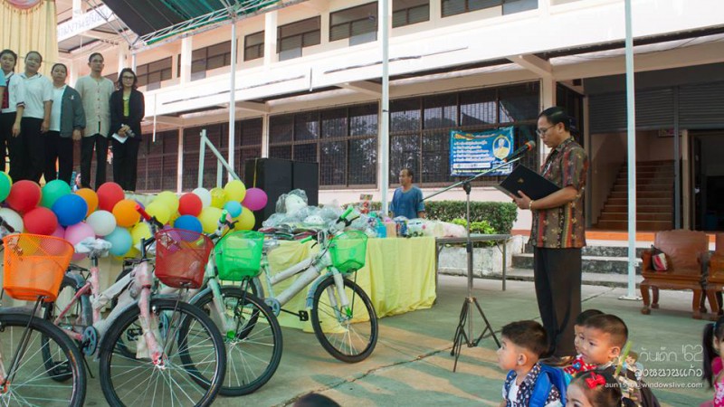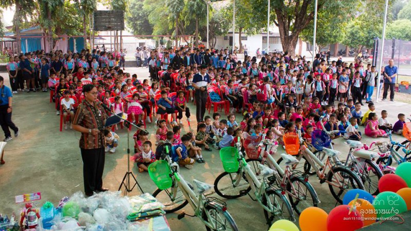 ท่านผู้จัดการประมูล สุภาจันทร์ มาช่วยแจกจักรยานให้กับนักเรียนที่โชคดี |