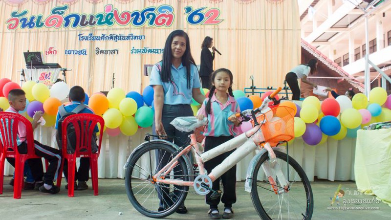 นักเรียนผู้โชคดีน้องน้ำตาลได้รับจักรยานด้วยนะคะ